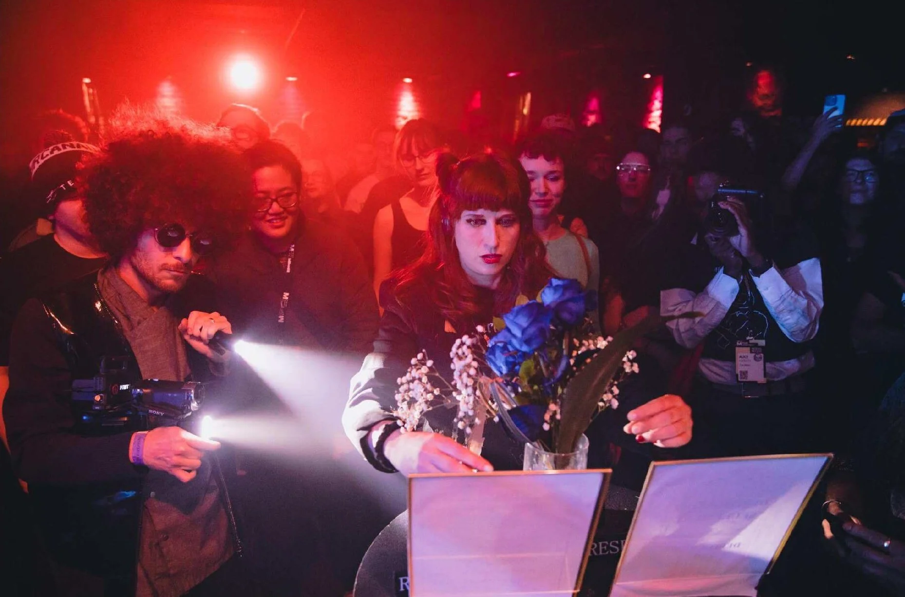 With VJ Anthony Piazza acting as a bodyguard camera on her side, Annie-Claude Deschênes surprised the audience with her strange jelly food, chocolate rocks and whipped cream on top of electronic beats. It's a performance art celebrating the absurd but it was impossible not to dance along. Would you like video surveillance for dessert ?